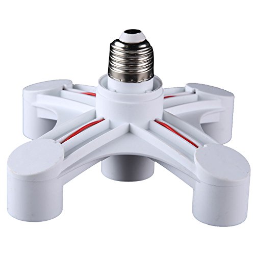 Specification:Base type:5 in 1 E27Voltage:220VCurrent:6AMaterial:PBTFeature:Made of high-quality PBT material, heat-proof aging, good insulating, durable and sturdy.The socket type is E27, so it is compatible with standard light bulb E27.Allowing 5 bulbs installed in one single socket at the same time, easy to increase lighting intensity.A must have for anybody who needs to convert a dull & gloomy place into a place shining with light & brightness.Suitable for using with fluorescent bulbs in home or other places.Package Included:1*5 in 1 E27 Socket Adapter (Bulb is not included)