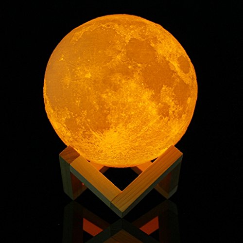 Description:If you love space or have a child that does but is afraid of the dark, then the Moonlight night light would be the perfect addition to your home.This realistic looking night light has been made to look like the moon and has craters and pockmarks along the surface to mimic the moon's surface.You can place it anywhere you like. This would be a perfect addition to your child's bedroom night table or in a home office where you simply want a nice relaxing soft light.Specifications:Style: Moon LampMaterial: PlasticBattery capacity: 1200mahVoltage: 3.7VPower: 3.7WCharging Time: 2-3 HoursWorking Time; 4-6 HoursDiameter:13cmSensor Mode; Tap SensorMoon Light Color: White, Warm white, Yellow (Tap the light, and then the color will change)Features:This lamp is made by plastic, restore the real appearance of the moon.Rechargeable battery and USB charging (include cable without Adapter);It brings you mystery and romance, this night light is just what you need for an out of this world lighting experience.White , warm white and yellow lighting color when taping the light, comfortable glow to any room.Package:1*Moon lamp1*Base1*USB line