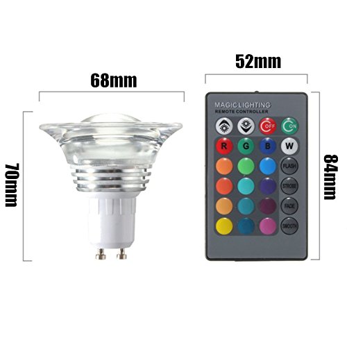 Description : E27/GU10 4W Color Changing RGB LED Magic Bulb Lamp Spot Light Remote 85-265V Connector : E27 / GU10Type : LED RGB BulbWattage : 4WVoltage : AC85-265VLight Color : RGBDimmable : YesDimension(mm) : 68mm x 70mmBeam Angle : 180 Degree Features : 100% brand new and high qualityLED energy saving lamp is the latest lighting technologyHigh-effect energy conservationLow-power consumption,high illumination and extra-long lifespanEnergy saving,low power consumption,long service lifeEfficient than incandescent and halogen lamp nomaler Kindly Reminder : 1. Please confirm the voltage first. If the voltage of a product is 12V-24V, then you must use a professional LED voltage converter.2. Please check the specifications of the product carefully before ordering to insure a proper fit.3. Do not disassemble any bulbs by yourself.4. Be sure to cut the power off before beginning installation to avoid personal injury. Packge Included : 1 x RGB LED Bulb1 x 24 Key Remote Details pictures :