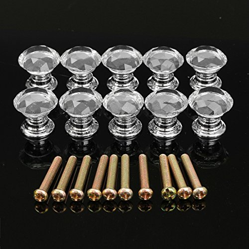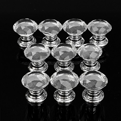 ILS - 10 pieces 20mm Diamond Crystal Glass Door Drawer Cabinet Wardrobe Pull Handle Knob