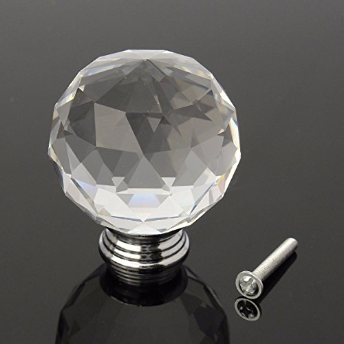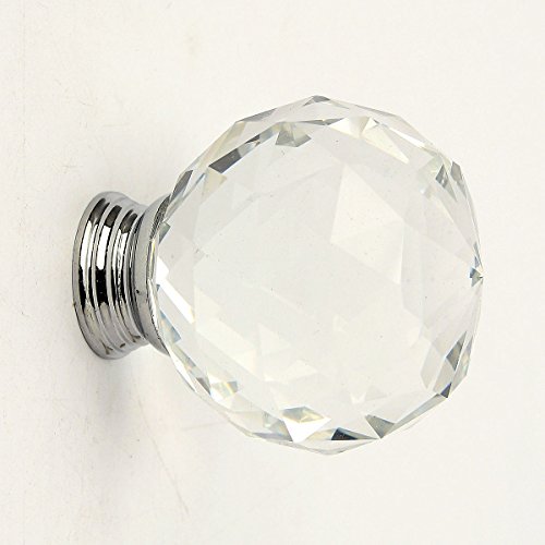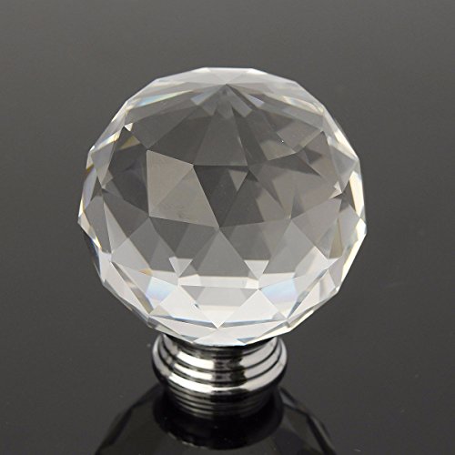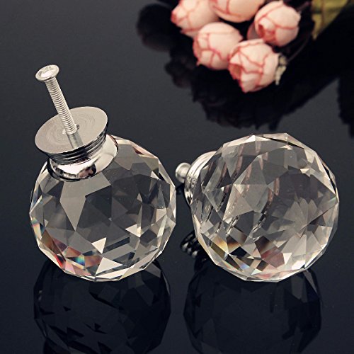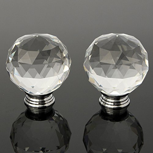 ILS - 2 pieces 50mm Clear Crystal Glass Door Handle Knobs for Drawer Cabinet Furniture