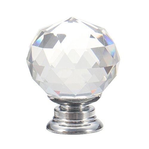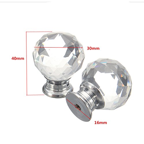 Material: Crystal Glass, Zinc AlloyKnob height: 40mmCrystal diameter: 30mmBase diameter: 16mmScrew length: 25mmFeatures: