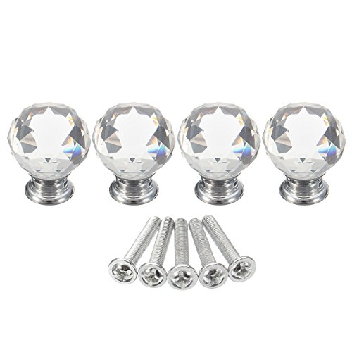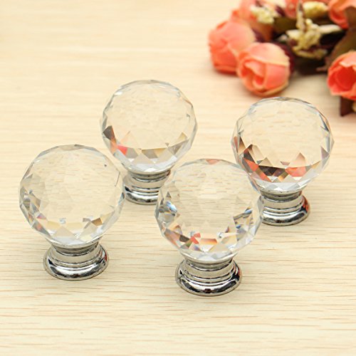 ILS - 4 pieces 30mm Clear Crystal Glass Door Knobs Drawer Cabinet Cupboard Furniture Pull Handle