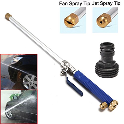 - Quick and easy to use, fit for all 3/4" standard garden hoses or other sizes with standard 1" female hose bib connectors.- 2 spray tips, one is high pressure stream sprayer, one is fan sprayer.- Application: Easily wash your car, truck, camper, or boat and tackle dirty wheels and rims. Remove built-up dirt and mold on wood or aluminum siding and concrete foundations. Blast weeds and grime from brick and concrete patios, pool decks, and driveways.