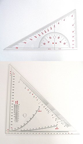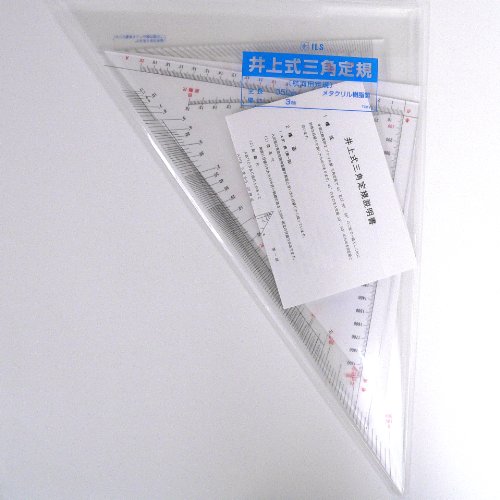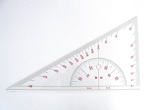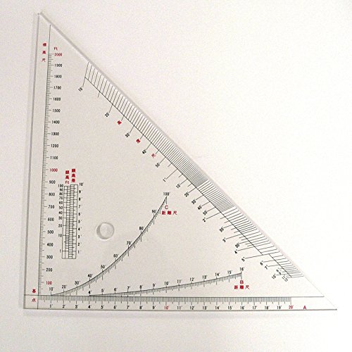 - 標高尺・距離尺・高度尺・眼高差尺などの目盛や方位線などを配した航海用の海図などに使用される三角定規です。
