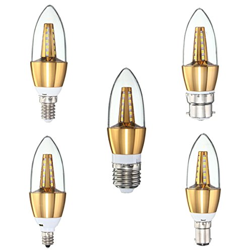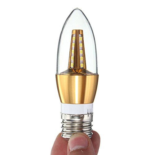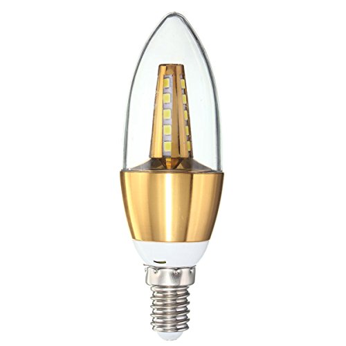 Description: E27 E14 E12 B22 B15 4W 25 SMD 2835 LED Pure White Warm White Golden Candle Light Lamp Bulb AC85-265V Model: LED Candle BulbConnector : E27 E14 E12 B22 B15Light Source : SMD 2835LED Quantity : 25Color : Waem White / Pure Whtye Color Temperature: 3000-3500k / 6000-6500k Wattage : 4WVoltage : AC85-265VLumens : 430LmBeam Angle : 360 Degree Features: Brand new and high qualityLED Bulb,No shadow,no VU and IR radiation.Long Service life, high luminous efficiency.Energy Saving, low heat and lower power consumption.Great Reducing carbon emission, environmentally friendly.With 360° beam angle, the bulb can give out light omnidirectional.More Energy efficient than Incandescent and most Halogen Lamps.No lead and mercury, no ultraviolet rays and other pollution elements.Application: Entertainment Lighting, Architectural Lighting, City Beautification, Portalbe Lighting, Illumination and decoration at home and public areasSuitable for hotel, dining-room,meeting room, drawing room,showroom, shop,corridor, Telephone booth,studio and exhibition etc. Packge Included : 1x LED Candle Bulb Detail picture :