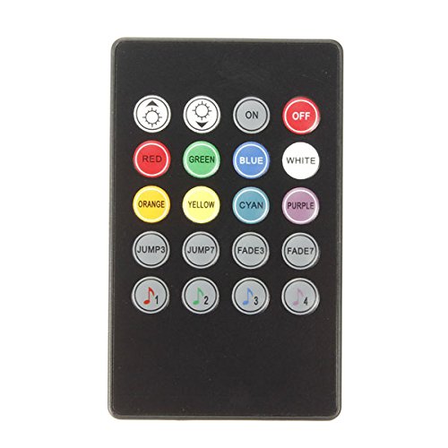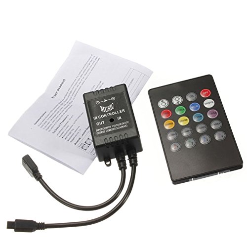 Features:20Key infrared Music LED controller adopts the advanced micro control unit. It isused for controlling a variety of LED lamp. For instance, point-source light, flexiblestrip light, wall washer light, glass curtain wall light and so on; it has many advantagessuch as low cost, convenient connection and ease of use. Meanwhile you could adjustbrightness, static colors and color changing effects via infrared remote control. When itis in sound-control mode, the colors will change with the music rhythm.Specification:Working Temperature:-20°C ~60°CInput Voltage: DC 12 - 24VOutput: 3 circuitMaximum Current: 4AOutput Current: 2AStatic Power loss: < 1 WOutput Power: < 72WConnecting Mode: Common anodeExternal Dimension: 63(L) X 35(W) X 22(H)mmPacking Size: 88(L) X 65(W) X 40(H)mmPackage included:1 X IR Controller???1 X Remote1 X User Manual