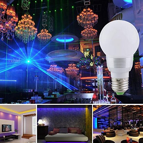 Specification:Voltage:AC85-265VBulb type: E27Wattage:3WCurrent:350maLight color:RGBWork temperature: -20??? to 40???Material: Aluminum + PCFeature:Very low heat generating, besides saving light powerLow heat no UV or IR radiation, low consumption,high brightnessEnergy-saving and environmentally friendly, is conducive to recyclingIt is a cool LED RGB Light bulb that comes with a remote control, can change 16 colorsThe magic lighting is capable of emitting White, Red, Green, Blue, plus twelve additional bright colorsIt has flash, strobe,fade and smooth mode for ultimate party light controlApplication:Home decoration, hotels, clubs, shopping malls decoration, architectural decorative lighting, boutique atmosphere lighting, illumination of emporiums, meeting room, factory, light box,backlighting, concealed lighting, channel letter lightingPackage Included:1*E27 3W LED light bulb1*Remote control