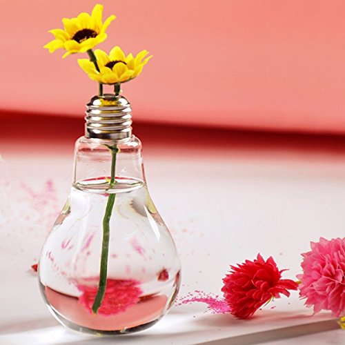 ILS - Creative 500ML Light Bulb Glow Glass Bottle for Beverage Plant Flower Vase Home Decor