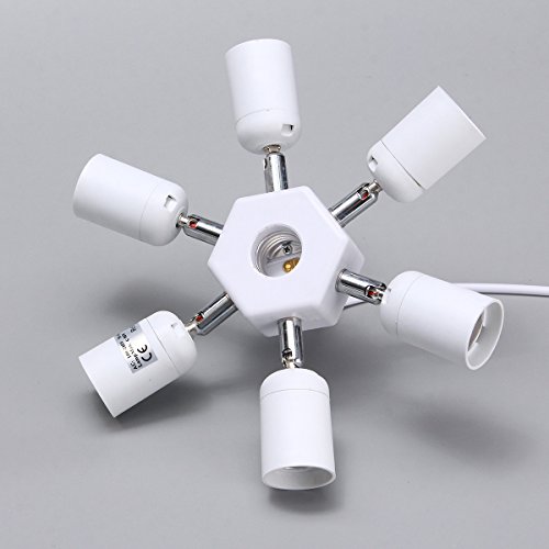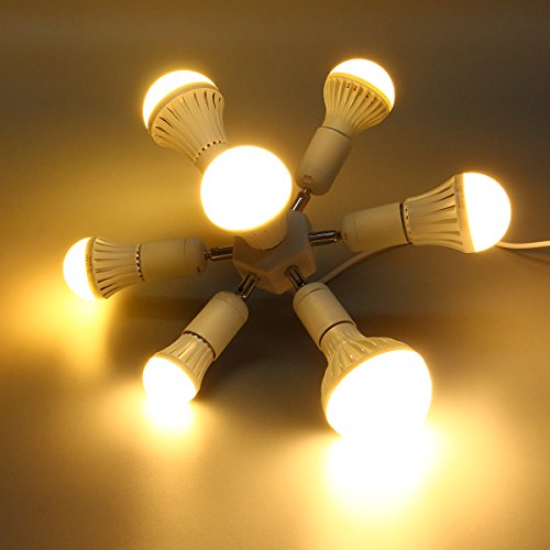 Specification:Base type:standard E27 baseVoltage: 100V-240VSupport power: 250W each socketColor: whiteShell material: PBTSuitable for: home and studio daylight bulbs in photographic use Feature:It is E27 base, same fit as regular household bulb socket.Each socket can be adjusted the direction.This product idea for more lights for photo or video, if you want to upgrade your single socket lights.Package Included:1*27 Base 7 in 1 socket adapter (not contain light bulb)