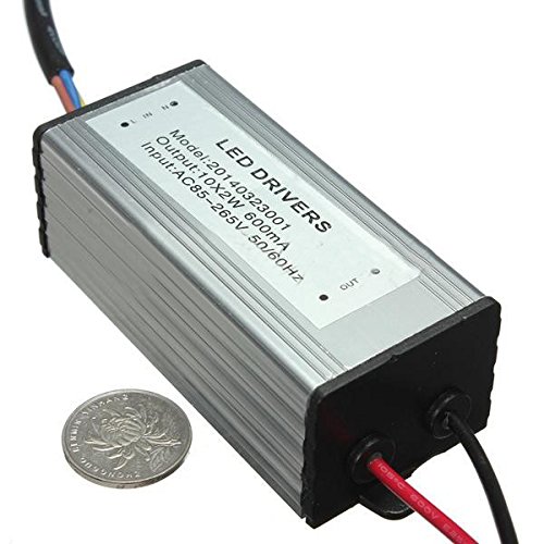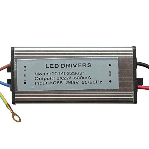 Specification:Item Type: 20W LED DriverOutput: DC18-36VWaterproof rating: IP65Input: 85V - 265V 50/60HzMaterial: PC & AluminumDriver Lifetime: >50,000 hoursOutput current: 600mA DC +/- 5%Driver Working Temperature: -20 Celsius to 75 CelsiusSize: 29mm(H) x 38mm x 81mm/1.14 x 1.50 x 3.19inchPackage Included:1 X 20W LED Driver