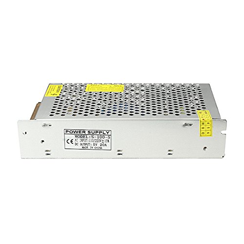 Specifications:Product Name:LED switch power supplyInput Voltage:110V-220VOutput Voltage:DC5VOutput Current:20AOutput Power:100WSize:199*98*42mm(L*W*H)Protection:Short circuit/Over load/Over voltageShell Material:Metal case/Aluminum base.Application:LED strip, led module, led lampConnection:L, N:AC power input:AC power Ground-V :DC power output "-"+V :DC power output "+"ADJ:Adjust the output voltageWorking Temperature:-10~+50°cStorage Temperature:-20~85°cAmbient Humidity:20%~95% Non-CondensationNote:This power supply unit" Does Not"come with installation instruction, wiring cable,on/off switch,or screws.Professional installation instruction of qualified is highly recommended.Package Included:1 X DC5V 20A 100W Power Supply
