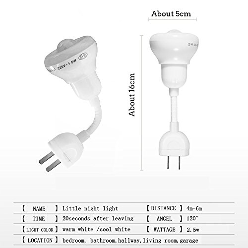 製品説明:機能で構成されています。1で構成されています。ののライトのみで動作しなければならない。人間の誘導センサーは5メートル以内、夜ライトが自動的にオンになくても、人間の3060秒後に検出すると、auto-off検知2で構成されています。柔軟性のあるラバーネック天使人間の誘導を簡単に変更。3.2ワット、省エネで長寿命。4。無料ツイストチューブで360度。5を参照してください。LEDソフト白色光6000 Kを傷つけたないようにするには、目をしている。6を参照してください。光のゲート、ヤード、ガレージ、廊下、バルコニー、バス、キッチンに最適。パッケージコンテンツ: 1 x人間の誘導ライト