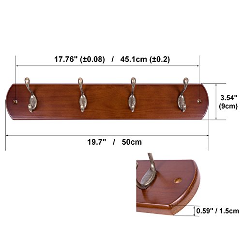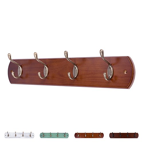 DOKEHOM DKH0164BN アンティークゴールドフック4連(4連と6連有り) 壁掛けフック ウォールハンガー ウッドハンガー コート掛け 壁掛け収納 天然木材 ネジ取り付け (全3色胡桃色)