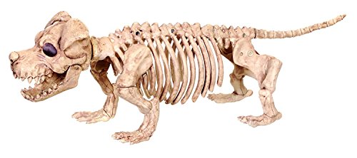 This skeleton puppy is looking for a good house, preferably haunted. Slightly smaller than Bonez, our original Crazy Bonez skeleton dog, Puppy Bonez is 20' long from nose to tail and stands approximately 7' tall. He has a bendable tail and a moveable head and jaw. A great companion for any Crazy Bonez skeleton.