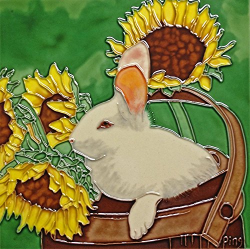 High Quality BD-0428 8 by 8-Inch Rabbit with Sunflower Ceramic Art Tile