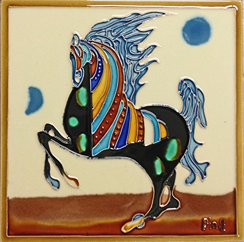 Hand Painted, glazed, and kiln fired ceramic decorative art tile. Easy to clean, can be used as hot plate. Each tile comes with a pre-attached packing that enable it to be hung on the wall or stand up as a picture with the build in easel stand.