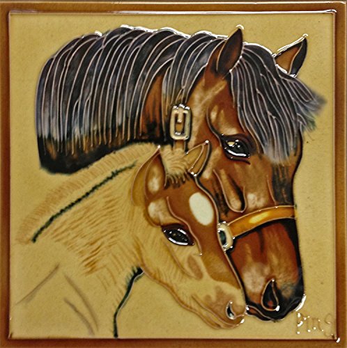 High Quality BD-0721 8 by 8-Inch Two Horses with Frame Ceramic Art Tile