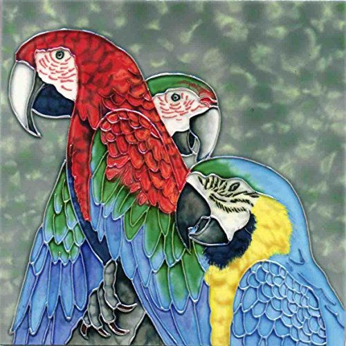 High Quality BD-2080 8 by 8-Inch Three Parrots with Grey Background Ceramic Art Tile