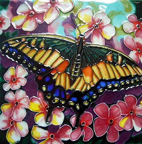 High Quality BD-2212 8 by 8-Inch Yellow Butterfly with Pink Flower Ceramic Art Tile
