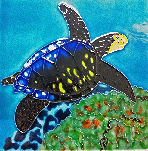 High Quality BD-2021 8 by 8-Inch Blue Turtle with Yellow Face Ceramic Art Tile