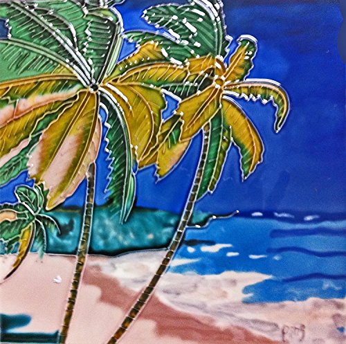 High Quality BD-0385 8 by 8-Inch Palms by A Beach Ceramic Art Tile