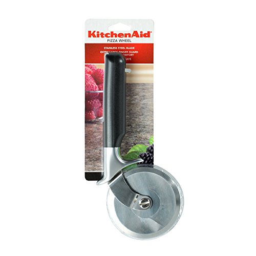 Slice all of your favorite pizzas with ease with this KitchenAid Gourmet Pizza Wheel. The durable, sharp, stainless steel blade resists rust. An angled wheel provides optimal comfort and performance. A built-in finger and thumb guard provides extra safety. A hole in the ergonomic handle allows convenient hanging storage. This pizza wheel is completely dishwasher safe for easy cleanup.
