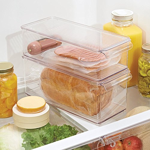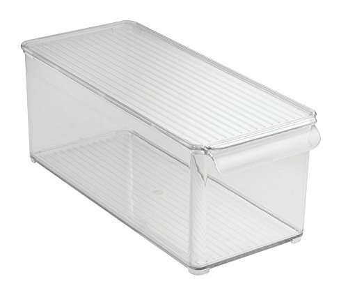 Size:Medium The InterDesign Fridge and Freezer Storage Bin is the perfect solution for organizing any refrigerator. This versatile bin is made of durable, clear plastic. It features an integrated handle and includes a lid.