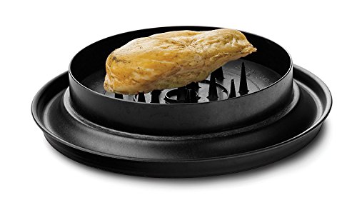 - Simply place cooked meat inside, cover with lid, and rotate halfway several times