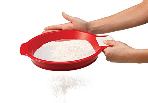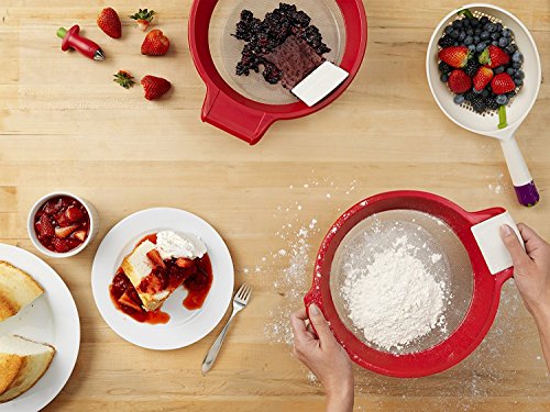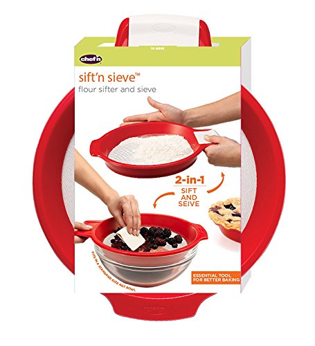 Package Quantity:1 ツ|ツ Style Name:Cherry Breeze through food preparation tasks with the beautifully designed Chef'n Sift'n Sieve Flour Sifter and Sieve. Sift flour and puree berries with this 2-in-1 kitchen tool. Aerate flour with this sifter for consistent baking results. Snap off the scraper handle and place the sifter over a bowl to press berries for the perfect puree. With a wide edge, this sifter fits comfortably over a 4-quart bowl. All of the pieces are top-rack dishwasher safe.