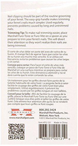 Size:1 Clipper The Marshall ferret nail clippers have an easy to grip handle that makes trimming your squirming ferret easier. Use regularly to prevent problems caused by long, untrimmed nails.