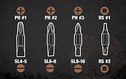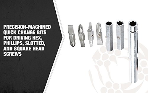 - INTERCHANGABLE precision-machined quick change bits for driving hex, Phillips, slotted and square head screws