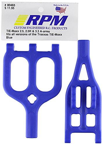 Product description Key FeaturesLighter than ever beforeMolded in same colors as older T-Maxx A-armsFor versions 2.5R and 3.3Unrivaled strength and performance4 packages necessary to complete 1 full truckOverviewRPM A-arms for the T-Maxx 2.5R, 3.3 & E-Maxx 16.8 are built to handle some serious abuse! We've redesigned these a-arms to compensate for the larger axle diameters of the 2.5R, 3.3 & 16.8 with axle clearance zones built right in, yet these clearance areas do not compromise the strength. These A-arms are lighter than ever before, yet still maintain all of the qualities that RPM customers have come to expect from RPM A-arms ÅEÄÅE rugged durability, unrivaled performance, strength comparable to or better than many alloy A-arms, yet are lighter than those same alloy parts and pricing unbeatable by any other aftermarket A-arm set existing. All this and we back our A-arms with the best breakage warranty in the R/C industry!We mold these A-arms in four different color choices, including a dyeable version for the ultimate in customization options and are sold in packages of one upper and one lower A-arm. From the Manufacturer RPM A-arms for the T-Maxx 2.5R, 3.3 & E-Maxx 16.8 are built to handle some serious abuse! We've redesigned these a-arms to compensate for the larger axle di