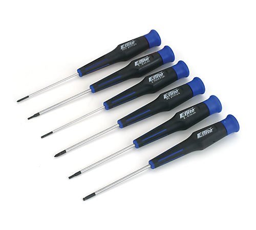 Set includes 2.5mm ball driver, 2mm hex driver, 1.5mm hex driver, 2mm flat screwdriver, plus 0 and 00 Phillips screwdrivers Ergonomic rubber-coated easy-to-grip handles Hardened chrome vanadium shafts and sockets Rotating cap end for comfortable use Storage pouch keeps tools organized All pieces also available separately