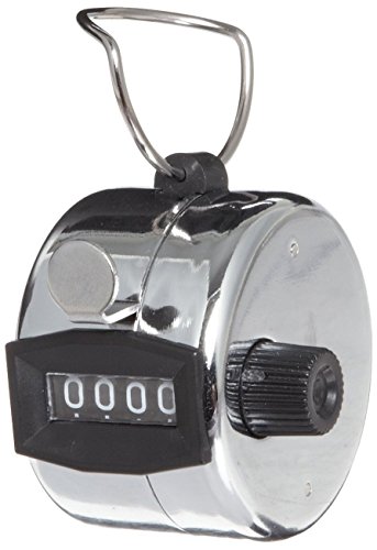 Use for counting blood cells, bacterial colonies, drops of liquid, or any repetitive event. Tallies up to 9999. Features a quick-reset knob, lens for easy reading, and finger ring for a secure grip. Sturdy, chrome-finished metal construction. Measures 46mm diameter by 41mm width.