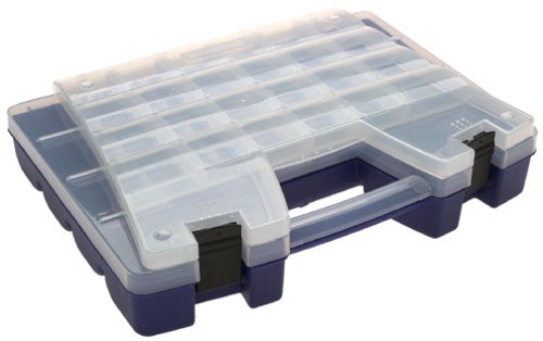 Size Name:15-Inch L by 11-1/3-Inch W by 3-1/4-Inch H Product description The Akro Mils portable organizer has a clear lid that reveals contents at a glance. The upper lid opens separately for additional storage capacity while the main compartment offers larger sections. Both lids lock securely insuring no migration between compartments. From the Manufacturer Dual lid organizer with adjustable dividers allow you to store items on two levels. Standard and large size available. Clear lids reveal contents at a glance. Upper lid opens separately for small item storage. Molded-in handle provides easy transport. Stands upright or sits flat, saving shelf space. Removable dividers included. Akro-Mils products save time and money by helping to increase material handling efficiency in virtually any industry. Our broad range of storage, organization and transport products are used to shorten assembly times, maintain accurate inventories, optimize storage space and improve parts protection. Our mission at Akro-Mils is a commitment to manufacturing innovative storage and material handling products of uncompromising quality at a fair price. We support this commitment with professional representation and consistent, superior service to meet the needs of our customers. For quality products backed by more than 60 years of reliable delivery and responsive customer service, we invite you to turn to the Akro-Mils advantage.