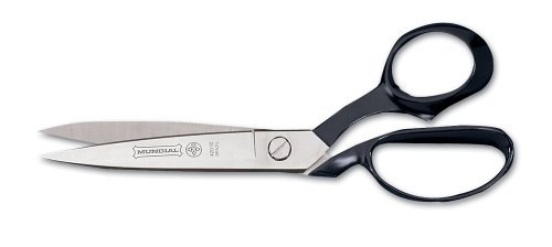 Mundial's 10' Industrial Stay-Set Bent Trimmers are hot-drop forged and nickel-plated, which means an exceptional, durable performance for the industrial or frequent sewer and are a must-have for every toolbox and garage. The patented Stay-Set pivot assembly is uniquely engineered to allow for easy adjustment of the ride. Once set to your personal preference, it stays set even under the most demanding of applications. The knife edge is able to cut easily through multiple layers of fabric or heavy-duty material cleanly to the very tip. The blades are strong, long-lasting, and designed for easy re-sharpening, while the handle is coated in a black enamel for comfort and reduced hand fatigue. The bent handle allows easier access to hard to reach places and the 4 1/2' cut makes these shears perfect for both everyday and more demanding cutting and sewing jobs.