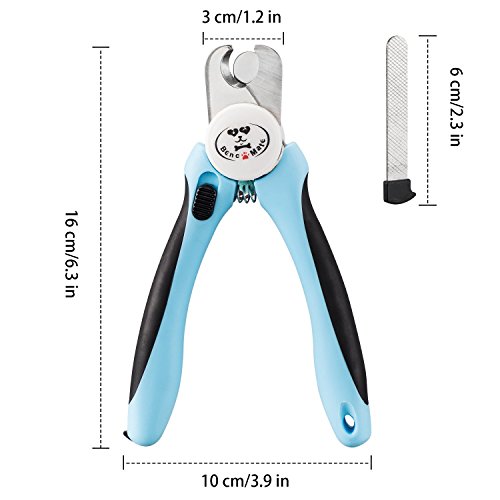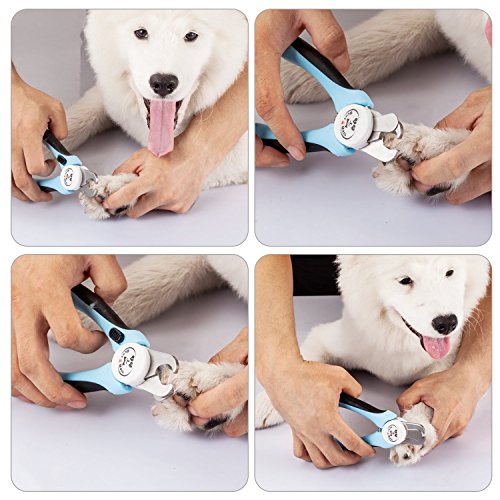 The premium stainless steel dog claw clipper features a safety stop that serves as a quick sensor to prevent you from overcutting your pet's nails. And the non-slip ergonomic handle will give you a comfortable grip. Product features: - Stainless steel blades - professional heat treatment makes it sturdy and sharp stainless steel cutting edge will last a long time- the safety guard as a quick sensor that prevents cutting too close to the quick- the push button on the handle for safe and convenient storage- the free nail file is included in the handle of the dog nail trimmer, it is useful for a smooth finish and convenient for storage- non-slip ergonomic handle will give you a comfortable grip and good trimming experiencehow to use - hold the paw securely while trimming dog nails, quickly cut off the top of the nail and be sure not to cut the quick - cut the nail at a 45 degree angle and do not cut off too much each time in case of injuring pet's nails. Please use the safety guard while trimming.If your pet's nails are very long, cut off a small part first time and then about one week or ten days cut it again, step by step until the nail up to an appropriate length - after trimming, use the built-in nail file to smooth over any ragged edgesimportant - keep out of reach of children - if bleeding occurs by accident while trimming, apply a generous amount of styptic power as quickly as possible and use your finger or cotton ball to keep the powder in place for 5 to 10 minutes.If bleeding lasts more than 20 minutes, you will need to take your dog to veterinarian.