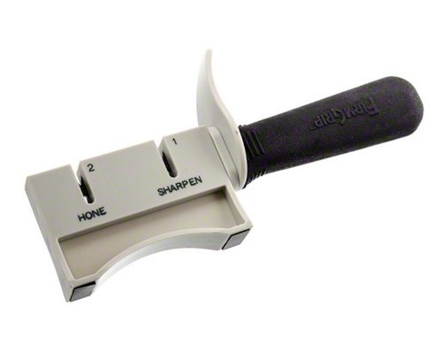 This hand held twice-sharp knife sharpener with firm grip handle. This handy device features a slot for honing and another for sharpening, giving you a complete system for edge maintenance. The handle is ergonomically designed to ensure that you get a comfortable and safe grip when using this product. Available in black color.