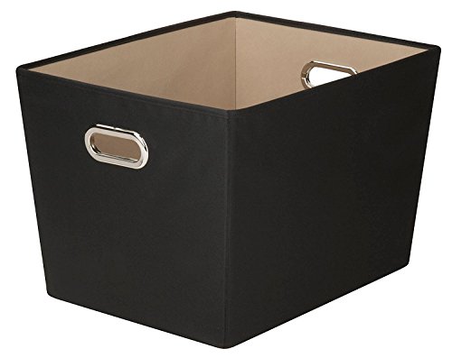 Size:Large ツ|ツ Color:Black Honey-Can-Do SFT-03073 Decorative Storage Bin with Chrome Handles, Black, Large. Black storage bin with chrome tote handles. Measures: 18.5 in L x 14.5 in W x 12.9 in H . Holds everything from CDs, DVDs, bathing toiletries, school supplies, toys, wash cloths and more. Fabric storage bins are non-woven and resists scratches or fading. Durable and sturdy polyester exterior construction with 75-gram non-woven interior. Home organization made easy.