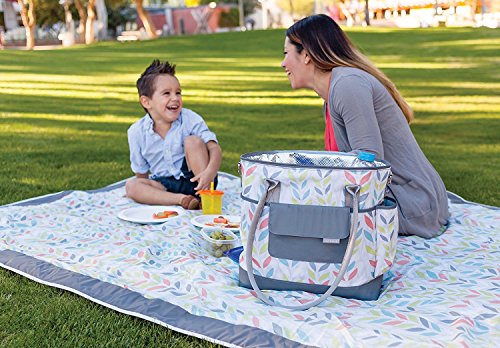 Color:Citrus Breeze The JJ Cole Insulated Tote combines all of the conveniences of our diaper bags with the features of a picnic cooler. Both the main compartment and the side pockets are insulated to keep items cool while you find the perfect picnic spot. The easy-access front pocket is perfect to store items you need at a moment's notice, and you can stash larger items in the roomy back pocket. This tote can hold up to 20 pounds, so you won't have to pick and choose what to bring along. Grips stroller attachments are included so you can quickly and easily attach your tote to the stroller and go.