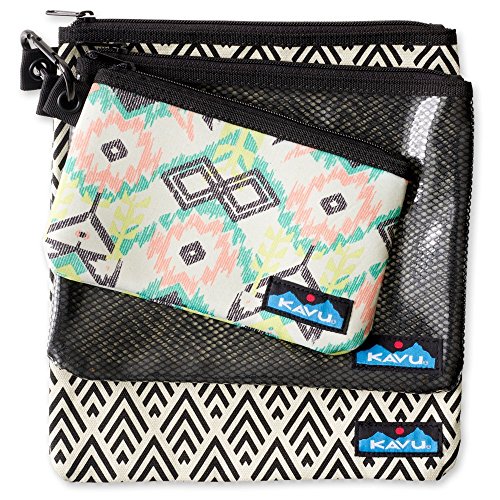 - Three in one, various sized pouches with zip closure combined together by carabiner