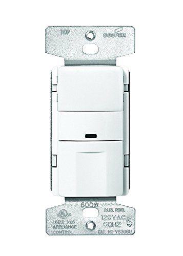 Product Description The Eaton VS306U-W-K Motion-Activated Vacancy Sensor Wall Switch: Can be wired as a Single-Pole or 3-Way device. Selectable ON/OFF LED nightlight with press and hold dimming function. Works with popular load types: Incandescent, Magnetic Low-Voltage, Electronic Low-Voltage, Fluorescent, Compact Fluorescent (CFL) and LED. Green LED indicates load status, provides locator light in dark and blinks to indicate motion detection. Push pad design provides minimal travel and crisp actuation. Replaces a standard light or fan switch. Provides 180-Degree field of view and 1000 square feet of major motion coverage. Provides 3-Way operation when used with a 3-Way switch or sensor. Selectable time delay of 5 seconds (test), 5 minutes, 15 minutes and 30 minutes for lights to remain on after room is vacated. Walk-in-Delay feature allows sensor to turn lights off without time delay when motion is detected briefly in room. Vacancy Sensors time delay default set to 30 minutes. Vacancy Sensor meets California 2008 Title 24. Electrostatic discharge protection. No leakage to load in off mode. Uniform color matched PIR lens to device housing. Mid-Size decorator wall plate included with product. Neutral required for installation of device. From the Manufacturer Eaton's Wiring Devices・E・E stylish passive infrared wallbox sensor provides a convenient energy saving lighting control alternative for 120V applications. The sensor includes light level sensing capability to further enhance the energy savings by preventing automatic control of the lights when the ambient light level is sufficient. For use with incandescent lamps, halogen fixtures, electronic and magnetic fluorescent, CFL, LED electrical motor loads. The color-matched, reinforced lens is tamper-resistant. This sensor is easily installed in any standard wallbox.
