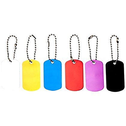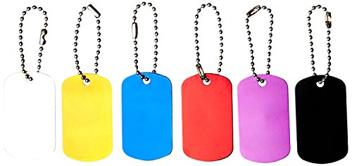 This dog tag set is ideal for identification purposes and engravable for inscriptions. Features of this product include: ・「 (6) Available colors: silver, gold, red, purple, blue, black ・「 (2) Tags in each color ・「 Tag dimensions: 2" x 1-・・・" ・「 Ball chain for each tag, length: 3-ツシ・・ ・「 Material: aluminum Important: Avoid getting counterfeit items. Genuine SE products come with our SE logo on the packaging. SE is committed to providing the customer with the best possible source for value. You will enjoy the quality, function and usefulness our 12-Piece Aluminum Dog Tag Set in Assorted Colors has to offer. SE is a registered trademark protected by US Trademark Law.