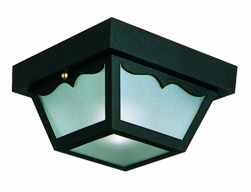 Color:Black Polypropylene Product Description The Design House 502872 2 Light Indoor/Outdoor Ceiling Light greets your guests at the door with a soft, inviting glow. Featuring a black polypropylene finish and frosted glass, this ceiling mount light has subtle curved details and a shadow box design. The small construction will emit just enough light for easy entry into your home or cottage without overpowering glare. With subtle details and a bright finish, illuminate your front porch or back deck with this fixture. Measuring 10.5-inches by 5.5-inches, this lamp matches brick, stone, wood paneling or aluminum siding. This light uses (2) 60-watt medium base incandescent lamps and is rated for 120-volts. UL listed and UL approved for wet areas, this mount light stays bright in harsh weather conditions. Coordinate your home with fixtures and furnishings from the Design House collection for a complete look. The Design House 502872 2 Light Indoor/Outdoor Ceiling Light comes with a 10-year limited warranty that protects against defects in materials and workmanship. Design House offers products in multiple home decor categories including lighting, ceiling fans, hardware and plumbing products. With years of hands-on experience, Design House understands every aspect of the home decor industry, and devotes itself to providing quality products across the home decor spectrum. Providing value to their customers, Design House uses industry leading merchandising solutions and innovative programs. Design House is committed to providing high quality products for your home improvement projects. From the Manufacturer Flush outdoor ceiling mount with black finish.