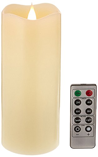- SPECIFICATIONS - -Candle size 3 inches Diam x 7 inches Height. Package of 1 . Candle runs on 2x C batteries (not included) .Features 4H-Off-8H switch. Made with real high quality wax and looks like a real candle