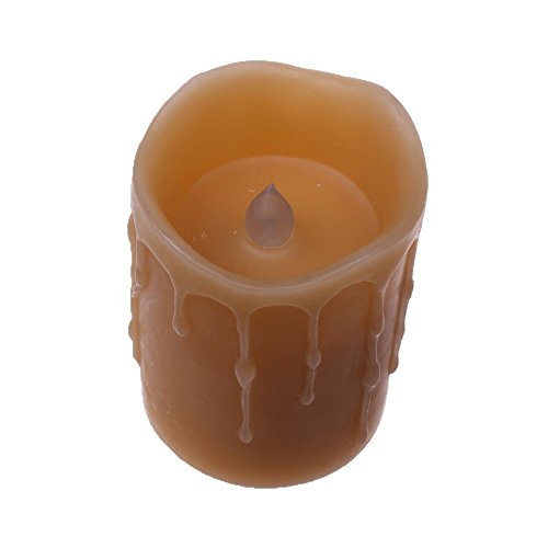 - Specifications - -candle size 3 inches dam x 4 inches height. Package of 1 . Candle runs on 2x C batteries (not Included) features 4h-off-8h switch. Made with wax and looks like a real candle