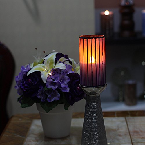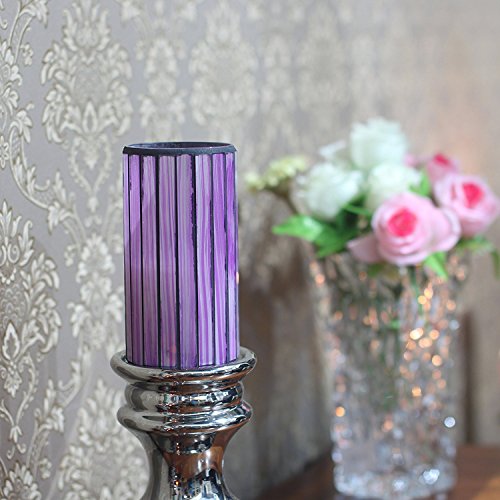 High Qualityless Real Wax Candle lantern With Timer,Home Decor,Glass Mosaic Candle,Battery-Operated,3x6 Inches,Purple
