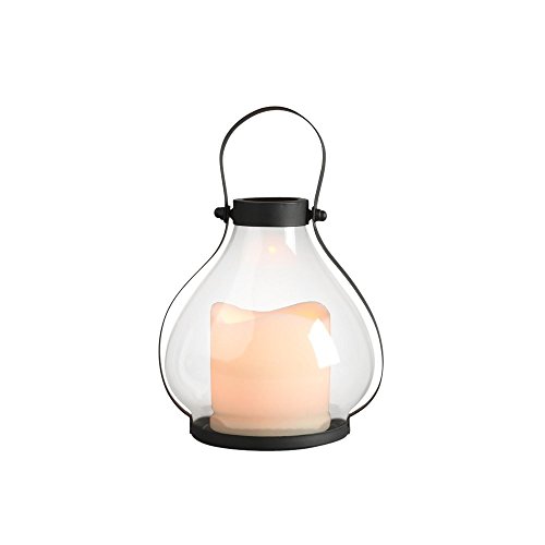 High Quality Everlasting Glow 41559 Battery Operated Metal and Glass School House Lantern with 3 by 3 LED Resin Candle, 5.25 by 5.91, Black
