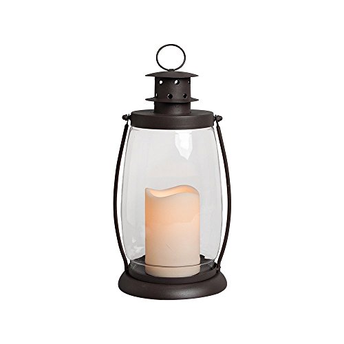 High Quality Everlasting Glow 42466 Battery Operated Metal and Glass Lantern with 3 by 4.5 Flameless LED Resin Candle, 6.3 by 12 Rustic Brown